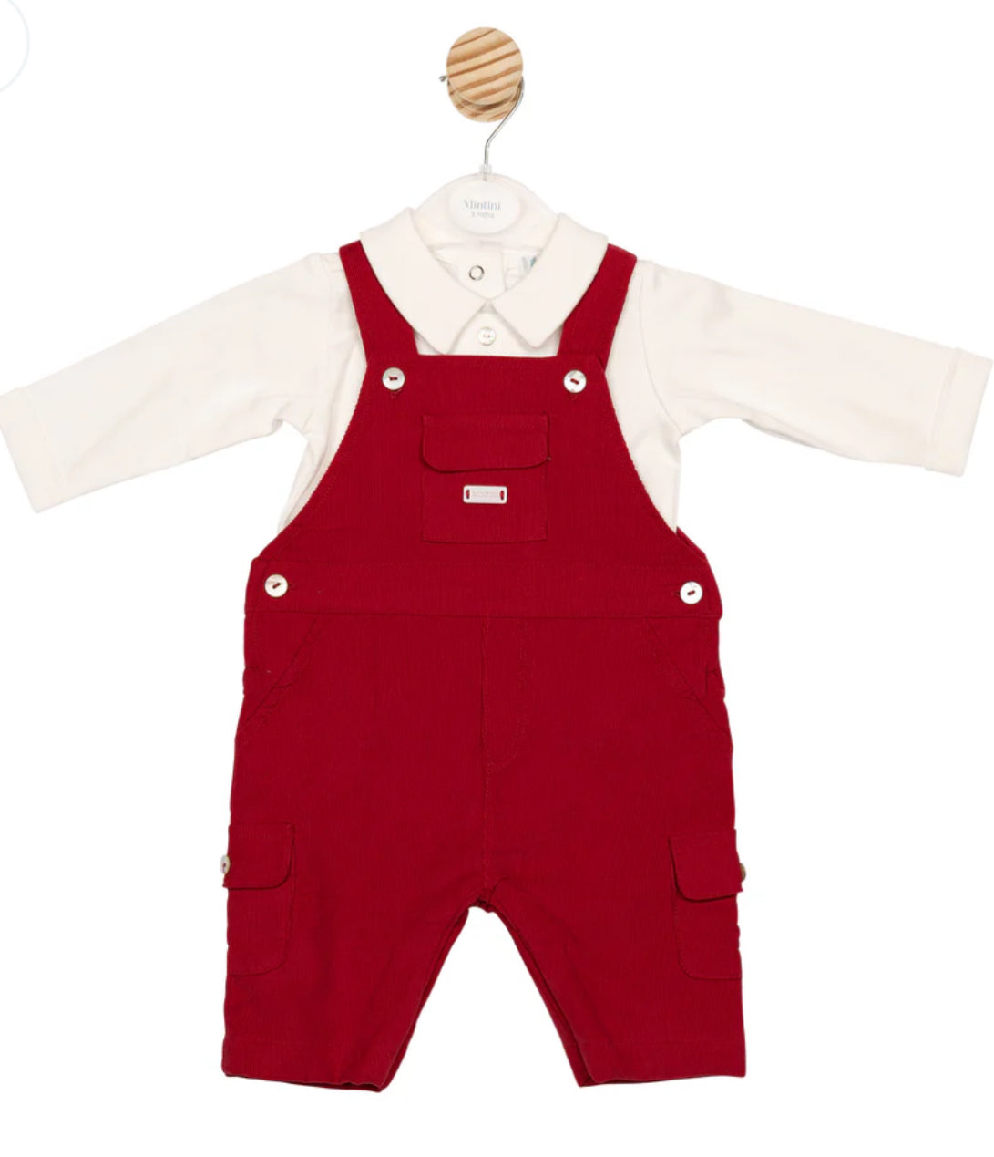 Get your little boy ready for the festive season with these Boys Red Cord Dungarees! Crafted from soft micro cord fabric in a vibrant red, these dungarees come with a stylish white collared top for a festive touch. Available from 3-24 months, true to size.