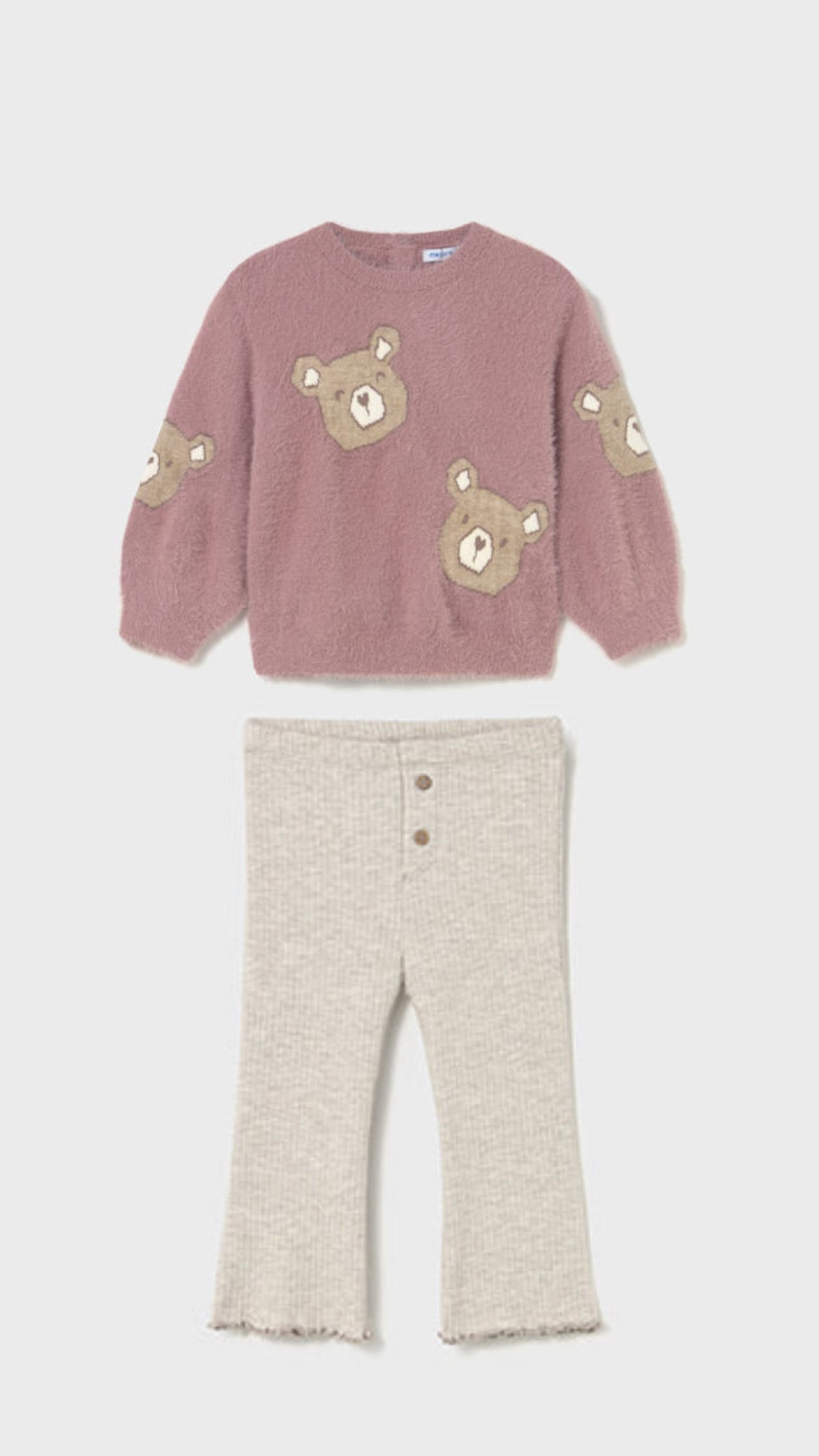 Mayoral Baby Girls Bear Jumper and Ribbed Flares Outfit