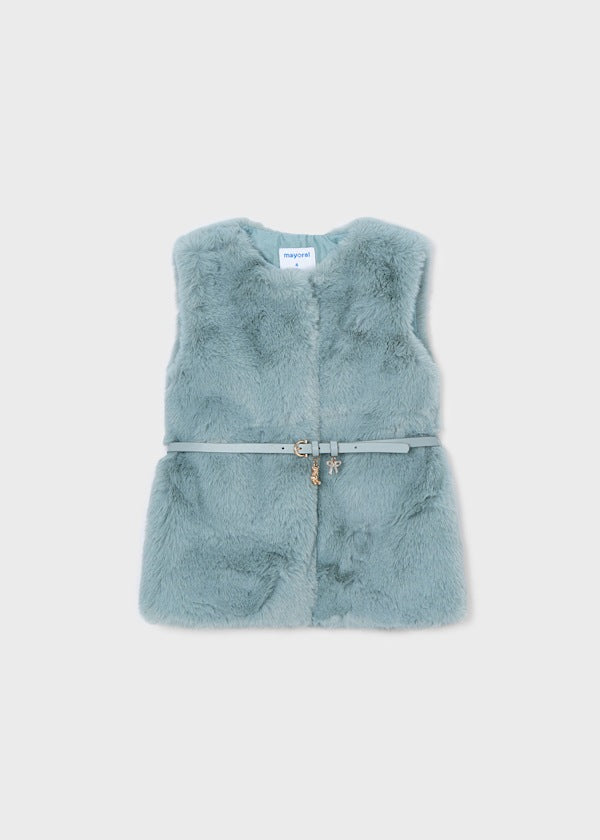 Mayoral Faux Fur Gilet With Belt- Duck Egg Blue