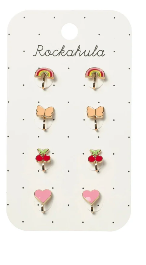 Bring the magic of the carnival to little ears with this delightful four-piece clip-on earring set! Each pair features vibrant designs—rainbows, butterflies, cherries, and love hearts—perfect for adding a splash of colour and fun to any outfit. The gentle clip mechanism means no piercing needed, making them ideal for young children who want to express their playful style. Mix and match throughout the day or wear your favourite pair. Pure carnival joy, clip by clip!