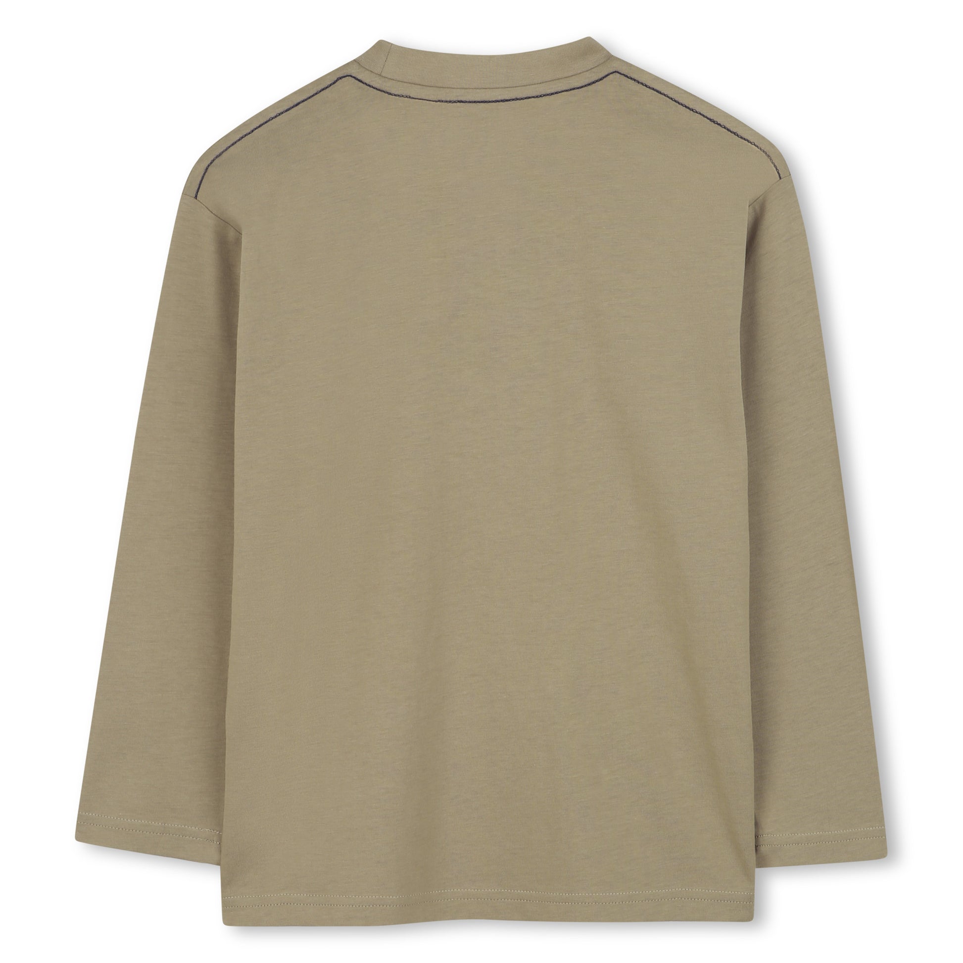 Embrace adventure with the Timberland Long Sleeve Top, featuring a cozy cotton fabric in a warm tan shade. Highlighted by a playful blue and yellow mountain motif, this top brings a splash of outdoor spirit to your everyday look. Perfect for layering or wearing solo, it's designed to keep you comfortable while adding a fun, nature-inspired touch to your style.